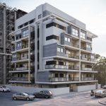 כחלק משדרוג חזיתות המבנה, הקפתי אותו עם קורות שמייצרות חזית אלגנטית מאוד כלפי הרחוב, אותן נפגוש מקרוב במרפסות הן בחזית הקדמית הפונה לרחוב והן בחזית האחורית. לצורך זאת שימשו אותי שליכט אפור-בהיר ואבן צפחה בשילוב עם אלומיניום דמוי עץ. החזית המערבית של הבניין מתאפיינת, רובה, בחלונות בגבהים שונים איחדתי את גובהם באמצעות מילואות בגוון הפרופילציה של האלומינים. חזית זו שהגיעה אלי משמימה וחזרתית הפכה “רנדומלית” ומעניינת בעלת מראה מהוקצע ומשורטט.