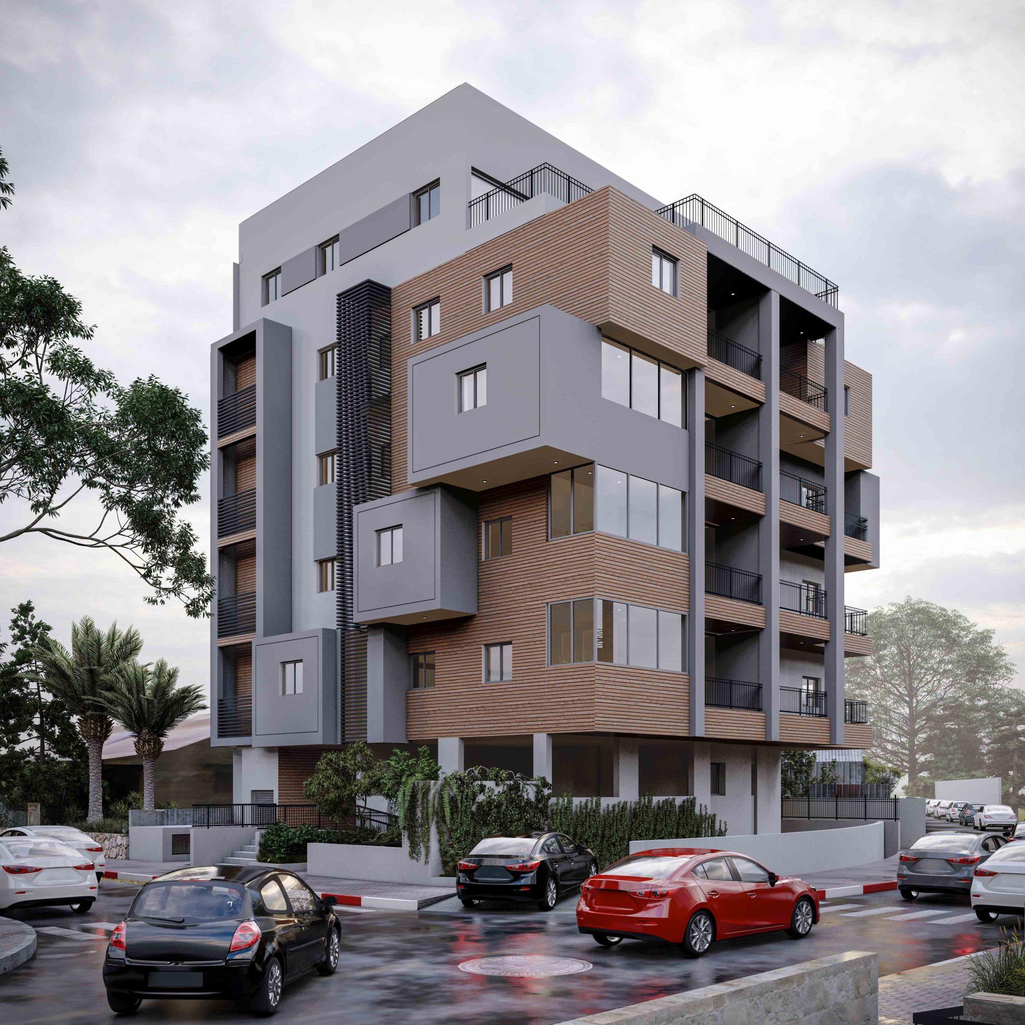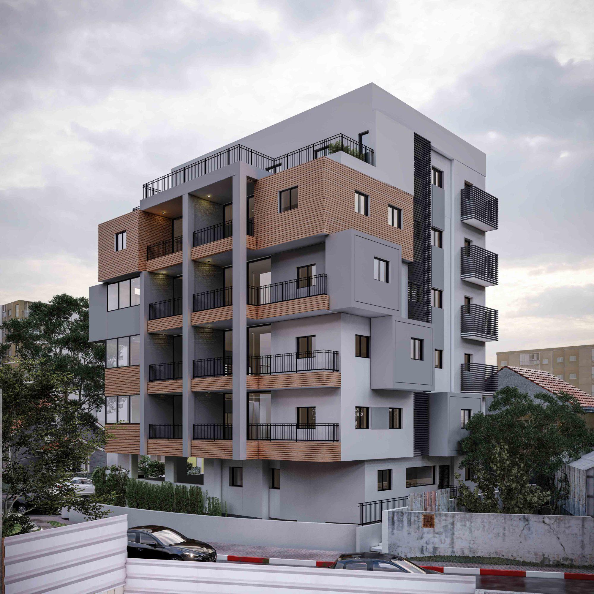 בתהליך עיצוב החזיתות למבנה זה זוהה הפוטנציאל של מבנה המגורים ונעשה שדרוג משמעותי למראהו בהתאם לסגנון העיצובי הייחודי והמרשים שבחרנו וכמובן ולא פחות חשוב מכך, בהתאם לצרכיהם של הדיירים.